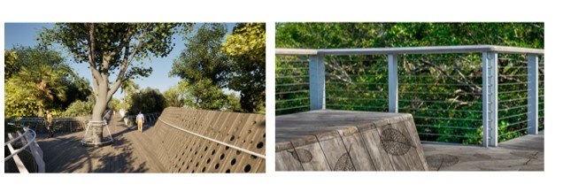 Design Imagery, Produce Fabrication Files, Mock-Ups, Fabrication & Installation Coordination for Accoya Boardwalk Railing Panels and Seat Tops